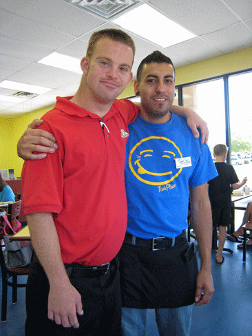 Though born with Down Syndrome, Tim Harris has been teaching everyone with whom he comes in contact very important lessons, one of the most important of which is the therapeutic value of hugs. Tim is the proprietor of Tim’s Place, the “world’s friendliest restaurant.” He makes it a practice to bestow his staff and customers with a “Tim Hug,” a calorie free, guilt free treat “guaranteed to improve your lease on life.”