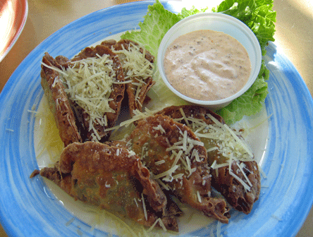 Perhaps the most creative item on the menu is a starter which by virtue of its name you might expect to find at an Asian restaurant. Tim’s Rangoon artichoke wontons are much better than just about any wontons you’ll find at any Asian restaurant. These are engorged with a cream cheese and artichoke heart mix then deep-fried to a crispy consistency. They’re the antithesis of wontons which seem to be lots of crispy wrapper with very little filling. The wontons are served with your choice of dipping sauces: cucumber, chorizo or green chile ranch. The cool cucumber complements the artichoke hearts very well.
