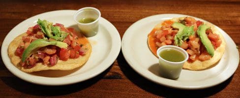 26 December 2015: In 2009, Cazuela’s added more than a page’s worth of mariscos to the menu including ceviche which you can order as an appetizer or as a plate with rice and beans. The tostadas de ceviche are available with either camarones (shrimp) or pescado (fish) marinated in citrus juices then piled atop a crisp taco shell with red onion, tomato and avocado slices. Cazuela’s does something other Mexican restaurants don’t do. It provides a small plastic cup of jalapeño juice infused with lime so you can add even more citrus flavor as well as a piquant kick to your tostadas. It’s something other restaurants should duplicate because the mix of tangy citrus and piquant jalapeños is terrific.