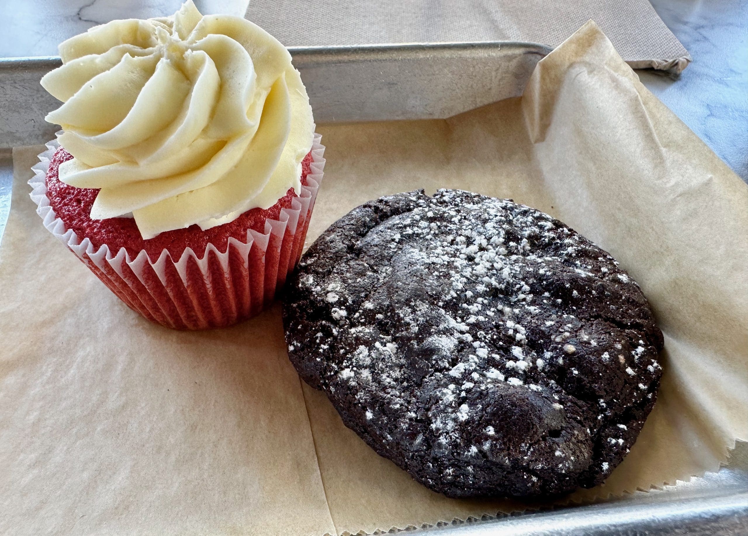 4 September 2007: Nowhere in Albuquerque will you find cupcakes comparable to The Grove. That’s the findings of a Duke City Fix (we miss you) taste test. How can you dispute those findings when you’re enjoying such unique concoctions as red velvet and coconut cupcakes. These are outstanding! Ernestine Ulmer stated something very obvious and wise when she said “Life is uncertain. Eat dessert first.” It’s an aphorism to which visitors to The Grove should subscribe, especially when the counter at which you order showcases cookie jars with such treats as chocolate chip and ginger cookies and cookies constructed with chocolate, walnut and sea salt. These cookies are fabulous!