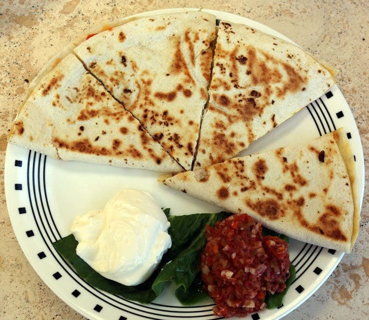 19 July 2017: Fire-roasted salsa and sour cream come standard with the Corrales Blue Quesadilla appetizer. This is one of the very best quesadillas in the metropolitan area, easily on par with the quesadilla at The Range. What makes this quesadilla special is that it’s crafted with two complementary cheeses, an ultra-sharp bleu (not blue) cheese and a mild Cheddar. It also includes New Mexico green chile, tomato, onion and Mexican herbs all grilled on flour tortillas. This quesadilla is roughly the size of half a pizza and could easily be served as an entrée.