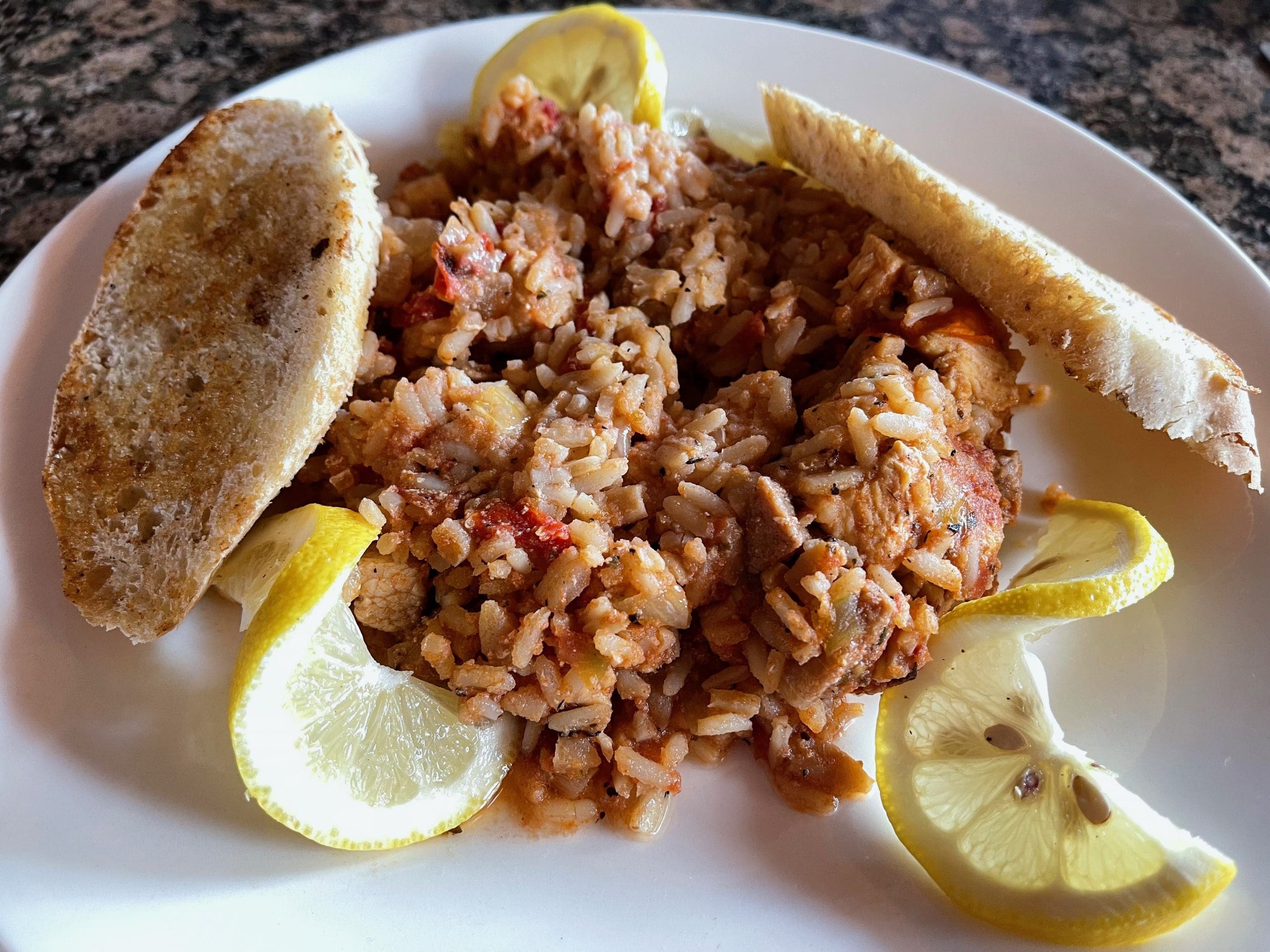 20 June 2021: Somehow Jambalaya (ham, bacon, chicken and sausage with blackening seasonings in a rich dark roux) made its way onto the al dente pasta al giorno menu. Why argue that it doesn’t belong there when you can be enjoying an assertively seasoned dish. The Bistro’s Jambalaya isn’t quite as moist as most Jambalaya we’ve had. In fact, it has a texture more similar to Spanish rice (albeit with blackening seasonings) than to one of the quintessential Cajun dishes. (Longtime readers will recognize my antipathy toward Spanish rice.) Sans shrimp or crawfish, it’s not New Orleans worthy, but it’s not horrible.
