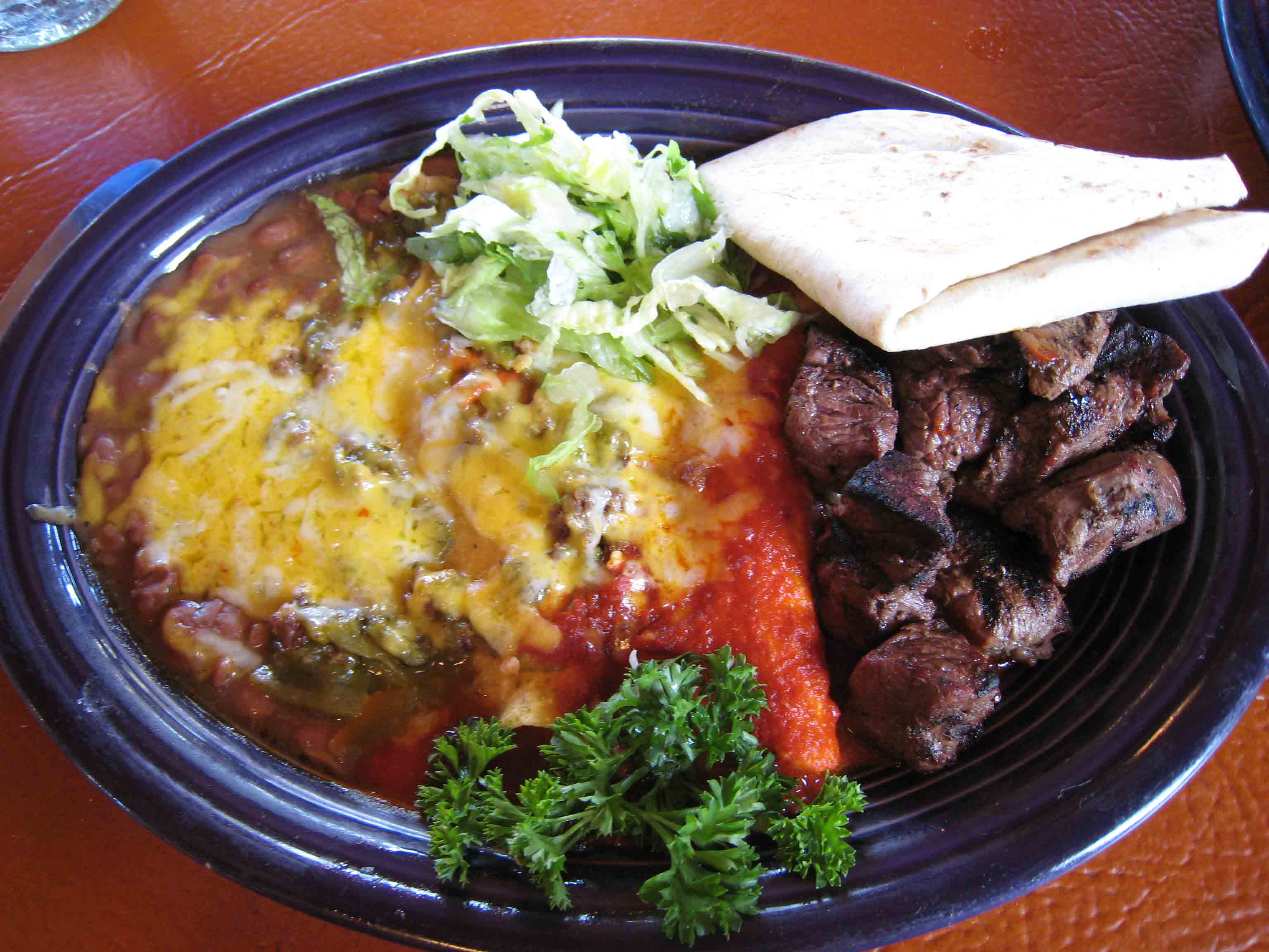 El Bruno’s has a couple of more fans. My wife and I stopped by for lunch after a long morning drive from Monument Valley and 3 weeks on the road. What a wonderful place for our chile fix! Absolutely great chile, tasty and piquant (especially the red). The enchilada plate had both a ground beef and cheese enchilada, a grouping which I like a lot. We got there just before 1:00 p.m. which was good because we got the lunch specials which are full plates (enchiladas, rice and beans), but reduced in price. A very good and tasty deal.