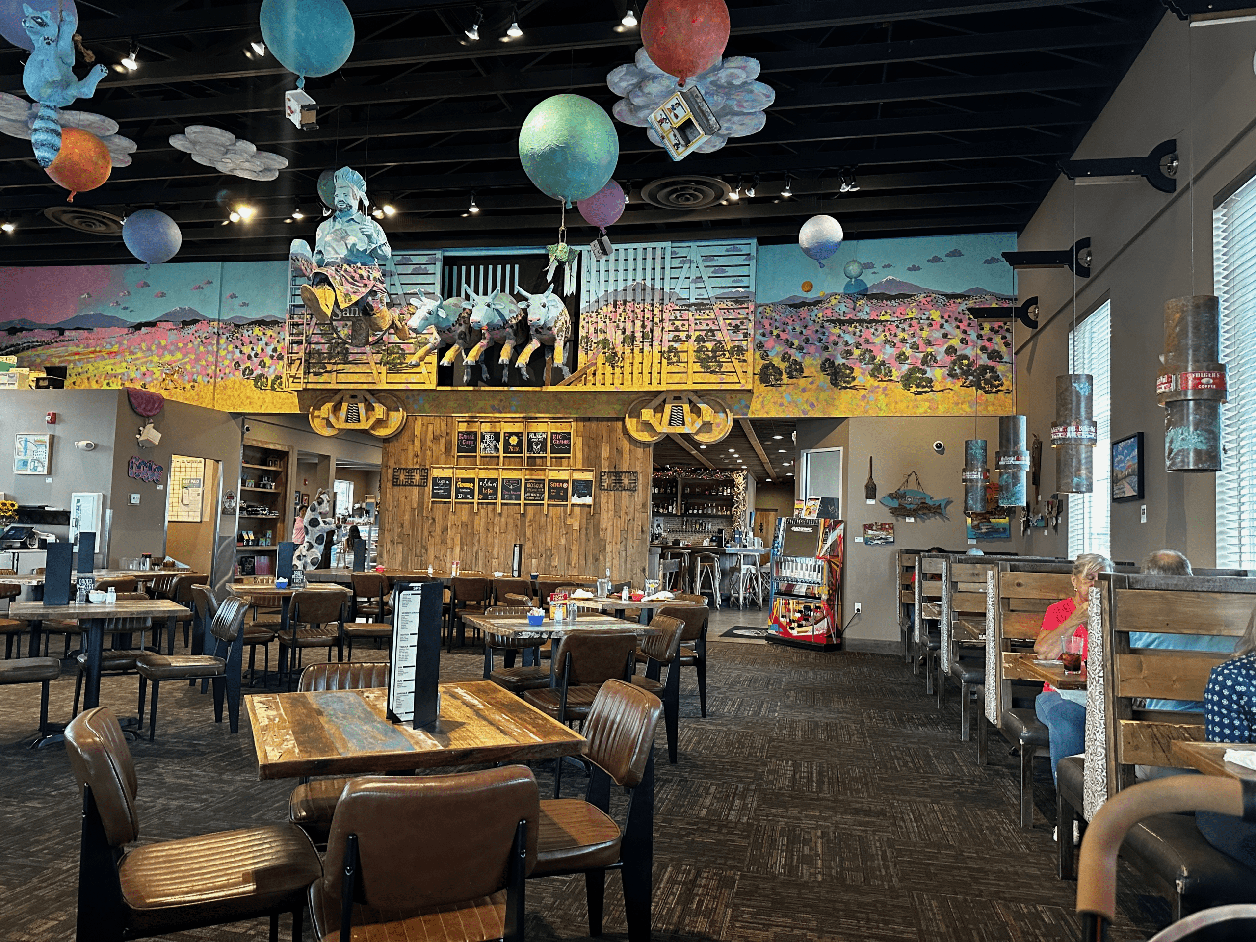Though my Kim and I are frequent visitors to the original Range in Bernalillo, Cliff’s only visit was fifteen years ago. Much has changed in that decade and a half. Today there are six locations of The Range–the original in Bernalillo, four in Albuquerque and one in Los Lunas. Every one of them offers a whimsical ambiance (such as the anthropomorphic bovines which grace the space) with something to see and enjoy everywhere you turn. While whimsy is one of the cafe’s defining characteristics, savvy diners know they can take the menu seriously. Offering a melange of American and New Mexican diner favorites and some of the best baked goods in New Mexico, you’re bound to find something to love.