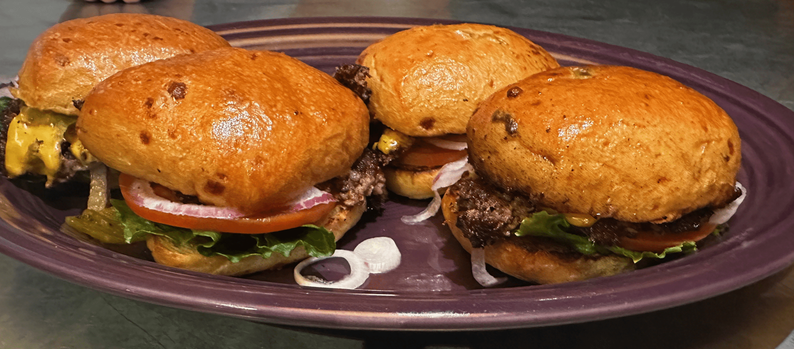One of the ironies about dining in contemporary America is how portion size has decreased while costs continue to escalate disproportionally. One example is the Big Mac, a misnomer if there ever was one. Seeing green chile cheeseburger sliders (Bueno green chile, American cheese, green chile Cheddar bun) on the starters section of the menu, we expected two-bites per burger. Instead, each burger was generous in size with four-inch buns (the size of many full-sized burgers in town). The burger was prepared “smash burger” style (thin, crispy patties). It had all the fixings (lettuce, tomato, onion) of a full-sized burger. The green chile Cheddar bun was soft and chewy with a pleasant piquancy.
