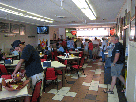 Approaching the restaurant may make you giddy with anticipation. You might not even notice that the original restaurant is situated in the seedy side of town where buildings are boarded up and surrounding streets are nearly deserted. The aroma of barbecue being slow-smoked with a combination of hickory and oak will probably have you salivating with unfettered desire, but you’ll have plenty of company from the line of diners snaking the building. That lust grows as you and those equally ravenous patrons share stories about first experiences with the legendary barbecue (the barbecue brotherhood which grow from Bryant’s barbecue queues could serve as an example for divided nations). The small talk ceases when you finally make it to the counterman where you place your order.