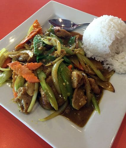 The menu features an impressive array of dishes, several of which are depicted in enticing color snapshots within the menu. Chef’s Specials are listed even before appetizers. The Asian Grill even has a section dedicated entirely to its Chow Fun dishes. Barbara told me “Thai really gets Chow Fun,” giving that menu section her highest endorsement. Vietnamese inspired rice dishes, noodle soup (pho) and vermicelli dishes are also available as are several vegetarian entrees. Weekday lunch specials are available Monday through Friday.