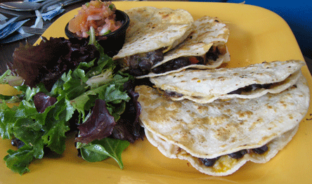 BEST BET: Trio of Salsas, Huitlacoche Mexican Mushroom Burger, Turkey Achiote Quesadilla, Mole Puebla with Jack Cheese Burger