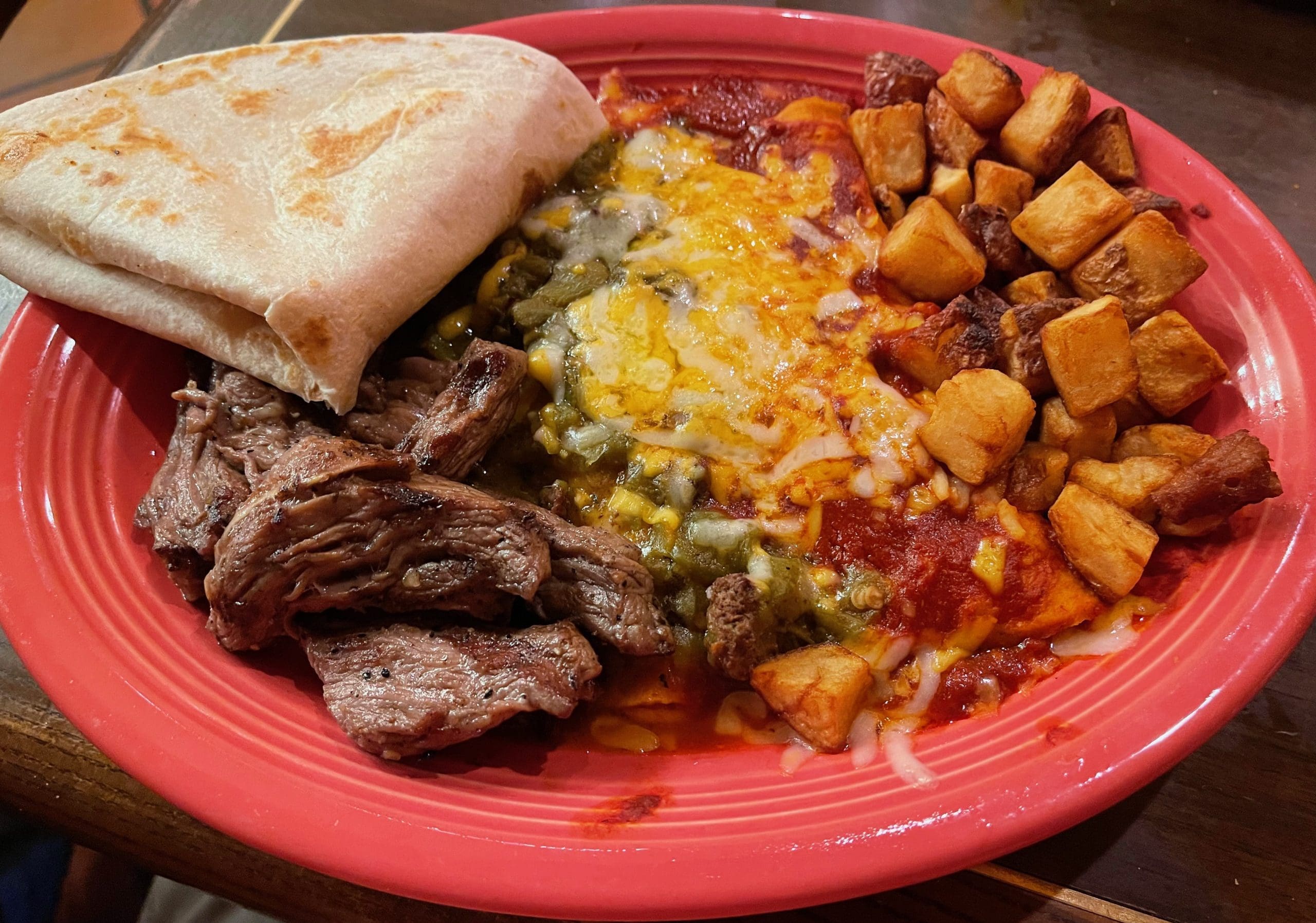 Tried the Carnitas a la Mex last night for my second visit in four days. One of the tastiest meals I’ve had in a long time. We got a second (and third!) basket of sopaipillas in lieu of desert. Superb. Then, so is the flan. World class.