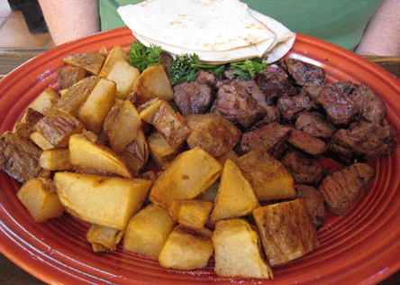 13 March 2011: Fortunately one of the dishes we enjoyed most in Cuba is also on the menu in Albuquerque. That would be El Bruno’s fabulous carnitas, some of, if not THE best carnitas in New Mexico. Celebrated among patrons who have sampled these cubed carnivore’s delights, the carnitas are available in two dinner combinations: the poetic sounding carnitas con papitas and the carnitas a la Mex which come with rolled enchiladas, refried beans and homemade tortillas, all of which are wonderful. What makes these carnitas incomparable is the quality of the sirloin (yes, sirloin, not pork as seems to be the case with most carnitas) which has the charbroiled taste of an outstanding steak. The papitas are silver dollar-sized, dusted with fiery red chile and on par with those served at Sadie’s in Albuquerque (meaning they’re the best).