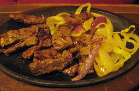 4 December 2011: It stands to reason that because of the pride El Bruno takes in preparing its carnitas, the fajitas would be something special and indeed they are. Sizzling strips of sirloin arrive at your table on a hot metal plate. The fajitas are served with sauteed onions and bell peppers, grated white and yellow Cheddar cheese, guacamole, lettuce, sour cream and flour tortillas. It’s the sirloin which stands out most because it’s a much higher quality cut than skirt steak which is typically used for fajitas. It’s chop house quality steak and it goes very well with whatever other ingredients you wish to use in crafting your meal.