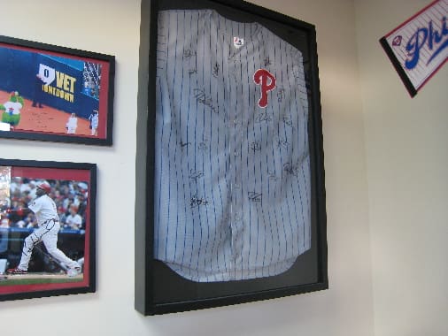 Rocco’s proprietor is blessed with the perfect name for an Eastern pizzeria. Though originally from New Jersey, Rocco Petitto is as Pennsylvania as they come as evidenced by his pizzeria being a veritable shrine to the keystone state’s professional sports teams. Framed under glass are autographed jerseys worn by some of the best professional athletes to play for the Pittsburgh Steelers or the Philadelphia Eagles, Phillies or 76ers. The jerseys of Donovan McNabb, Pete Rose and others along with signed pictures of other Pennsylvania sports luminaries flank flat-screen televisions poised above the two seating areas.