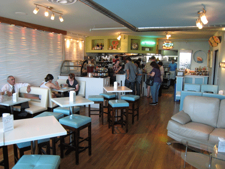 Indecisive guests may slow the lines a bit as they study the menu perched above the counter at which you place your order, but the staff is efficient and very helpful and tends to move things along fairly quickly Savvy frequent visitors will grab an individual paper menu and peruse it before they reach the counter. Once you place your order, you’re free to choose where you’d like to sit.