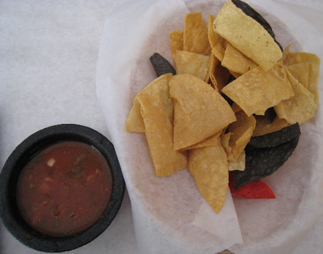 Also prepared fresh daily are the blue, red and yellow tortilla chips made on the premises from white corn. The chips are made throughout the day and are kept crisp and fresh on a dual warmer. They are served with a fiery salsa which is complementary. It is a delicious salsa, the type of which you will devour two bowlfuls of before your entrees are brought to your table. Fresh onion, cilantro, garlic and jalapeño are its constituent ingredients, but deep flavor is its byproduct. The chips are crisp, thin and low in salt.