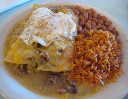 The Spanish rice is good, too, but the beans are wonderful. They come from Aiken Farms in nearby Estancia. New Mexicans who love beans know that the very best beans are grown in the Estancia valley where more than 120,000 acres are dedicated to the pulchritudinous pinto bean. You can taste the difference! These are the best beans I’ve had at a restaurant in a long time.