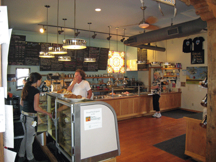 Real Food Nation is located on the intersection of Old Las Vegas Highway with US Highway 285, just east of the world-famous Bobcat Bite. It’s housed in a venue which was once a gas station, the first or the last one in or out of Santa Fe depending on which direction you were headed. To your left as you walk in, you’ll find an array of glass cases displaying attractive pastries, breads and more. The menu is scrawled on slate boards. If you’re still a skeptic about real food, your first inclination might be “this is real food?” For the most part, the menu is replete with such favorites as breakfast burritos, burgers, meatloaf and more. Vegan and vegetarian options abound as do sandwiches,soups, salads and a quiche of the day.