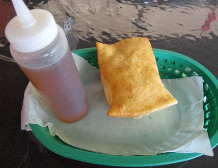 24 December 2013: To my point on the lack of piquancy on the salsa, not all batches of chile, both red and green, are created equally piquant–even from the same crop, same vendor and same degree of heat. It’s a strange phenomena with which all New Mexicans are familiar. Unless you buy nothing but “hot” chile you’re almost always guaranteed that your “medium” chile will sometimes lean toward “mild.” That was the case with the two stuffed sopaipilla plate pictured above. One sopaipilla was stuffed with ground beef and one with carne adovada. One was topped with green chile and the other with red. There was plenty of delicious to go around, but not much bite.