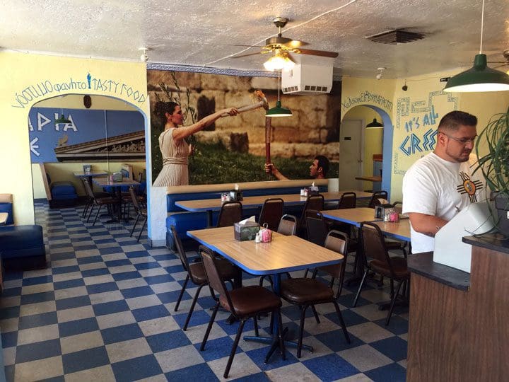 Even the thought of losing the Olympia Café sends shudders down the spines of the many loyalists this café has cultivated over the years. It seems imponderable that one could drive Route 66 and not be greeted by the unmistakable aromas of well-seasoned Greek cuisine wafting onto Central Avenue. Those aromas are not only a welcome respite from the choking haze of automobile emissions, they’re a prelude to deliciousness. Step into the restaurant and the first thing you see is a counter in which you place your orders. The specials of the day are scrawled on a slate board on a restaurant wall while the daily menu is situated just above the counter.