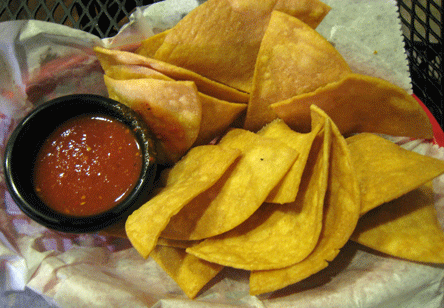 Alternatively, you can opt for chips and salsa instead of the fry bar (or better yet, dine with a friend and order one of each). The chips are freshly made and served hot to the touch. They’re relatively low in salt and are large and thick enough for Gil-sized scoops of salsa. The salsa is pureed, nearly water thin which makes scooping a challenge. Dipping the chips is more appropriate. For a pittance more, you can “make ’em nachos” by adding cheese sauce from the fry bar and having the chips served with your choice of meat and jalapeños.