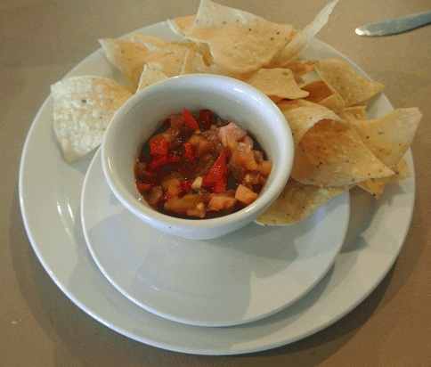 29 March 2014: Latino tapas are similarly non-standard fare, an impressive assemblage of innovative deliciousness. You can make a meal out of the tapas. Three per person is what our server advised, but he probably based that on my “svelte” physique. One of those tapas (if it’s on the menu) should be the pasion fruit salsa with chips. In New Mexico, chips and salsa are pretty de rigueur, so much so that it’s a rare salsa which can distinguish itself. The pasion fruit salsa is unique, a combination of piquancy, tropical fragrance and tanginess. It’s a welcome respite from the usual with chips. Now, if you like your salsa to provide the flavor element of pain, this salsa won’t do it, but it does pack enough heat to titillate your tongue.