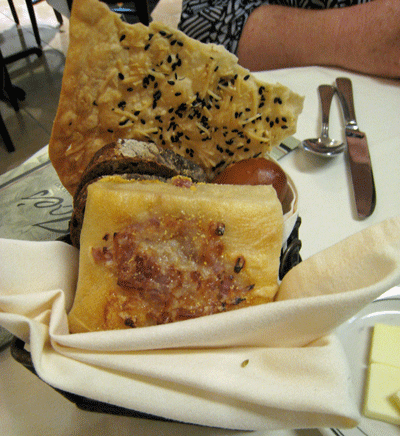 As you contemplate the menu, a basket of bread is delivered to your table along with soft butter you can actually spread. The artisinal assortment of breads is as beauteous to admire as it is delicious to devour. The assortment includes a caramelized onion and cheese roll, a cracker-like lavosh and cranberry-walnut bread, each so good you’ll want the basket replenished. Make sure to save at least one slice or roll to sop up one of the menu’s outstanding bisques, the best of which might be the sumptuous stone crab bisque.