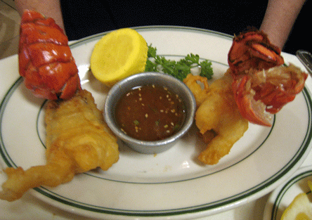 The lobster tail tempura is a winner–two six-ounce tails sheathed in a light tempura batter which imparts a crunchy accent without detracting from the sweet, succulent deliciousness of the lobster. The lobster tails are served with an Asian inspired, slightly spicy apricot dipping sauce. It’s wholly unnecessary and, if anything, you might find yourself missing drawn butter. A grilled jumbo lobster tail is available for purists who don’t believe the flavor of lobster should be masked, even partially, by any batter.