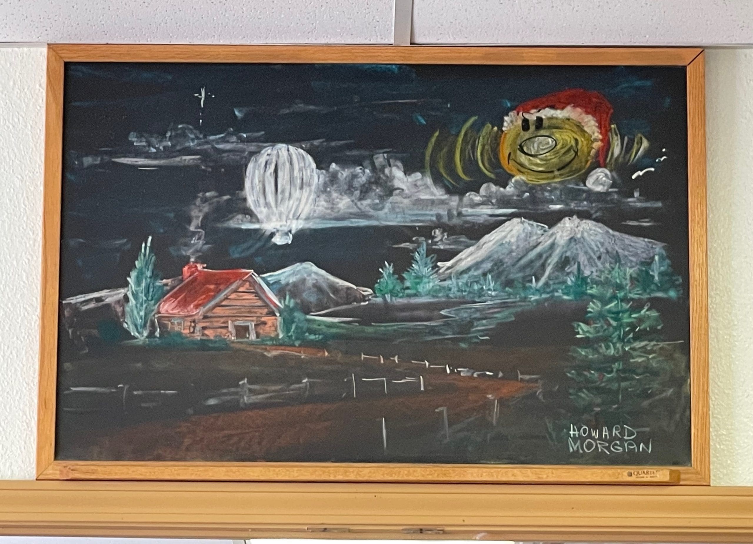 Similar to other popular breakfast destinations in town (Lindy’s and the Western View Diner come to mind), Vic’s embraces its Greek heritage. Commemorative plates and framed posters from Greece as well as from New Mexico adorn the restaurant’s stark walls while the menu is festooned with Greek favorites. One of the restaurant’s masterpieces is a colorful drawing on a slate board by legendary Albuquerque (KOAT TV) weatherman Howard Morgan, one of the most beloved media members to ever grace New Mexico’s airwaves. Weatherman Morgan passed away in 2021. It’s comforting to see his art hanging on the wall. Good or bad, no one delivered the weather with such a broad smile and happy countenance.