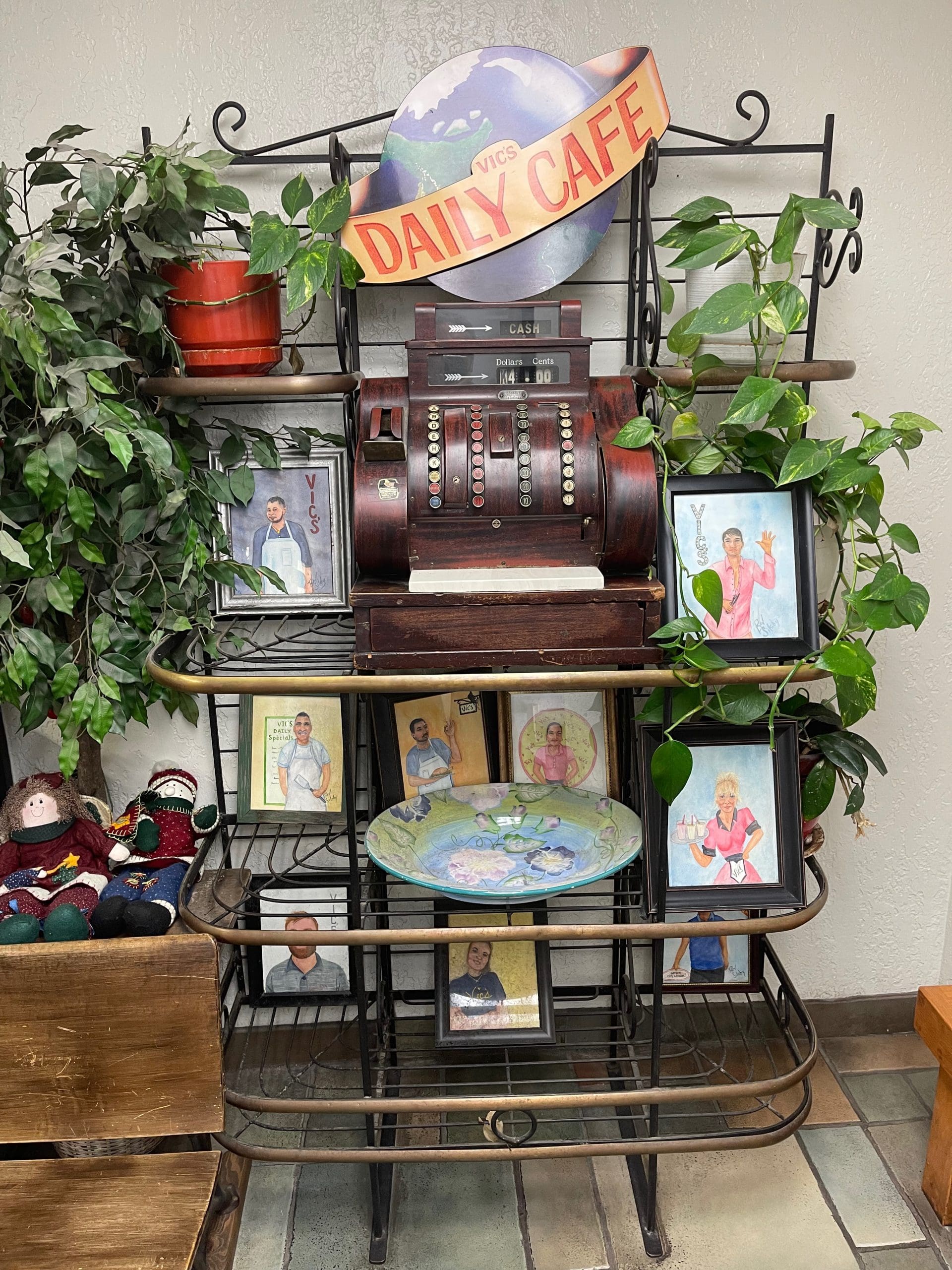 Although it seems Vic’s Daily Cafe has been around forever, founder Victor Pandazis didn’t launch his eponymous restaurant until 1998. The likely reason it inspires familiarity and nostalgia for many of us long-time residents is because for years previous we frequented Andy’s, a bustling breakfast restaurant owned by Vic’s father until closing in 1997. Andy (86 as of this writing in March, 2022) is no longer a ubiquitous presence at Vic’s where he once greeted guests, escorted them to their tables and sometimes ran the cash register.