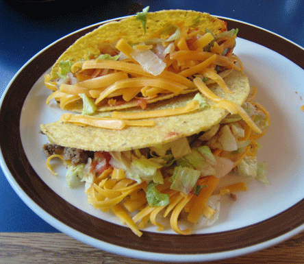 The hard-shell tacos are thoroughly enjoyable–engorged with well seasoned beef, crisp shredded lettuce, salsa and generous amount of shredded Cheddar cheese. If it rankles you to pay premium entree prices at most restaurants for skinny tacos, El Farolito offers ala carte tacos for a reasonable cost. These tacos are quite good and not just for the money.