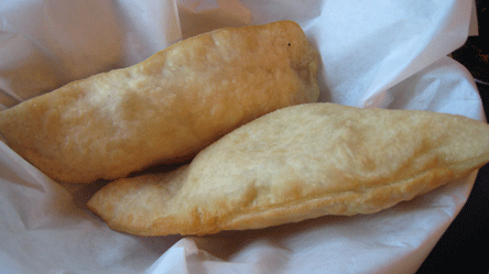 Some entrees such as the green chile beans and Frito pie are accompanied by sopaipillas hot off the fryer. The honey is also served hot. They’re so hot to the touch that you’ll have to let them cool off a bit before you can enjoy them. Tear into them and wisps of steamy flavor will escape, moreso when you pour some honey into the cavity you cut into the pillowy puffs of deliciousness.