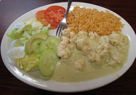 Come lunch today I was happy that you have a big backlog of reviews that I have not yet followed up on. This brought me to this somewhat iffy looking place and inspired me to order Camarones Culiche which was wonderful AND belly bloating. My dining companion selected Camarones a la Plancha which made her happy. They were served with complimentary tostados instead of Consomme de Camaron. The menue had enough variety to inspire a return.