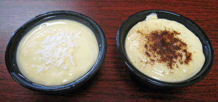 There’s only one dessert on the menu, but it’s done two ways. That dessert is natillas, the delicate custard dish made with eggs and milk. One rendition is topped with coco (coconut flakes) and one with canela (cinnamon). Both are served in a plastic bowl with a lid, perhaps lending an impression that they’re not homemade. Like the Jello brand pudding of Bill Cosby commercial fame and the pudding George Costanza enjoyed on Seinfeld, these natillas have a “skin” which you have to puncture to get to the moist, creamy custard which is thankfully not too sweet.