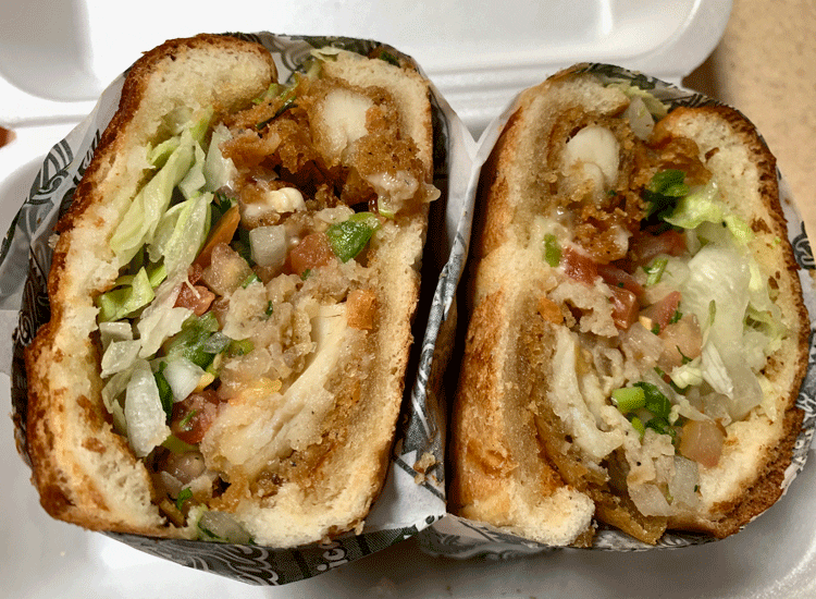 16 September 2020: When machaca was originally made, dried and spiced meat was rehydrated and cooked down again, a technique made necessary because of the difficulty of preserving fresh meat. When families got tired of eating dried meat (jerky), they made machaca. Today it’s more commonly made by slow-cooking meat in a spice mixture. Most often it’s shredded into tender tendrils and used for making tacos, burritos and tortas. Federico’s machaca torta (shredded beef, onion, tomato, bell pepper, egg and cheese) is constructed with mostly moist ingredients save for the egg. The egg doesn’t exactly bring ruination to an otherwise good torta, but it certainly makes it less delicious.