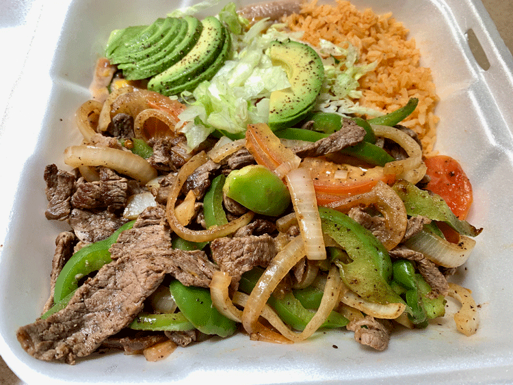10 April 2020: One dish that definitely holds up better than carne asada fries is steak fajitas (marinated steak, grilled onions, bell peppers, tomatoes and sliced avocados) served with rice. Because the marinade used on the steak has more time to sink in if you refrigerate the fajitas overnight, the steak is even more delicious when grilled the following day. Unlike fajitas at New Mexican restaurants, these weren’t served with sour cream, shredded cheese and pico de gallo and the flour tortillas wouldn’t hold muster in a New Mexican restaurant.