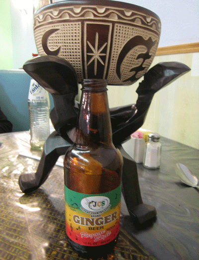 Talking Drums has an enviable beer and wine list which includes African red and white wines as well as Jamaican and African beers. The last item on the list of beverages is “Coca Cola products,” the same boring standards you can have anywhere else in Albuquerque. Start your African-Caribbean adventure with something different, perhaps coconut juice; Champagne cola; pineapple, pear or passion fruit sodas; or better still, have a JCs Reggae Country Style Brand: Ginger Beer Non-Alcoholic Soda. It’s akin to an adult root beer and is refreshing and delicious as any beverage.