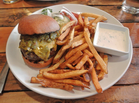 First I must thank the owner because he treated Senorena most wonderfully on her Birthday last thursday; not only did he get us in at the time we desired but brought out a special homemade bread pudding for her that was spectaculor! We started out sharing a Quinoa salad that was very refreshing and I believe hand picked in their backyard. We both had the green chile cheeseburger and it was one of the best we have had in this state. Very interesting fries were served that included not only potoatoes but parsnips which made the meal very intriguing. I look forward to coming back and enjoying eating at this very fine restaurant on 4th street…