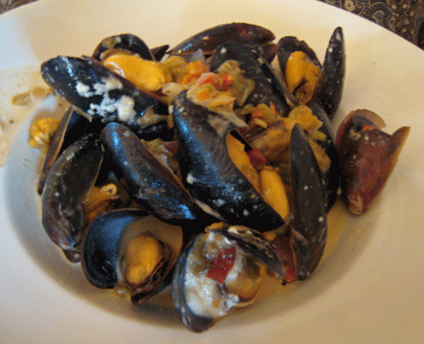 29 April 2012: Not available on the dinner menu is a brunch entree that has supplanted my favorite of its kind in Albuquerque. That would be the Prince Edward Island Mussels with feta and green chile broth prepared with red onion and red bell pepper topped with cilantro. Forgive me P’Tit Louis Bistro, but the mussels at Farm & Table are even better than yours and yours are superb! The broth, especially the marriage of feta, green chile and red onion is absolutely glorious, better even than the restaurant’s wonderful soups. You’ll want several slices of the restaurant’s housemade bread to sop up each drop.