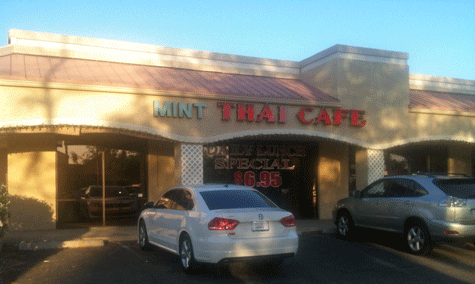 Traveling with colleagues to the Phoenix area has meant choking down chow at a lamentable litany of local losers such as Macayo’s (Mexican), Oregano’s (Italian) and Paradise Bakery (soups, salads and sandwiches) and national chains such as California Pizza Kitchen, Claim Jumper’s and Buca de Beppo. Now, my “open-mindedness” only goes so far and eventually my cravings for non-carbon copy food borders on rapacious. Fortunately I’m sometimes able to convince other like-minded weary travelers to try the local, non-chain fare. For more than ten years, that has often meant a visit to the Mint Thai Café in Gilbert, Arizona.