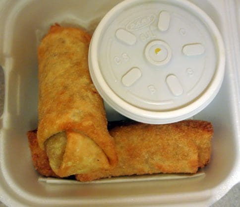 28 September 2014: Not necessarily an anachronism, but still somewhat rare within appetizer menus are old-fashioned egg rolls, the type of which are standard in Chinese restaurants. Two golden-hued egg rolls per order are accompanied by a sweet-spicy mustard with all the benefits of sweet and sour sauce with the eye-watering kick of hot mustard. The egg rolls are engorged with vegetables as is usually the case in Chinese restaurants.