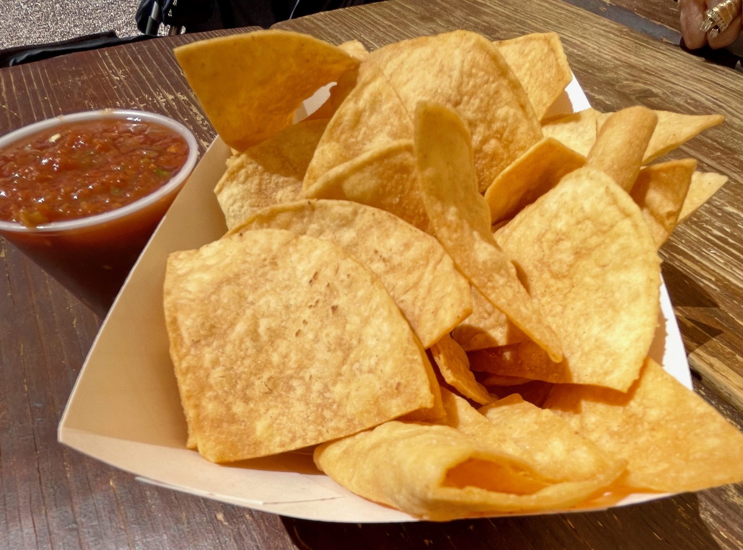 Of course, no visit to any New Mexican restaurant is complete without salsa and chips, probably worthy of being designated New Mexico’s official state snack, appetizer or even condiment (at least the salsa). The salsa features finely chopped chile, tomato and onion and has a nice bite to it. The chips are thin and lightly salted, but they’re formidable enough for Gil-sized scoops. My Kim couldn’t handle the salsa so being the dutiful husband that I am, I made the sacrifice of polishing them off single-handedly.
