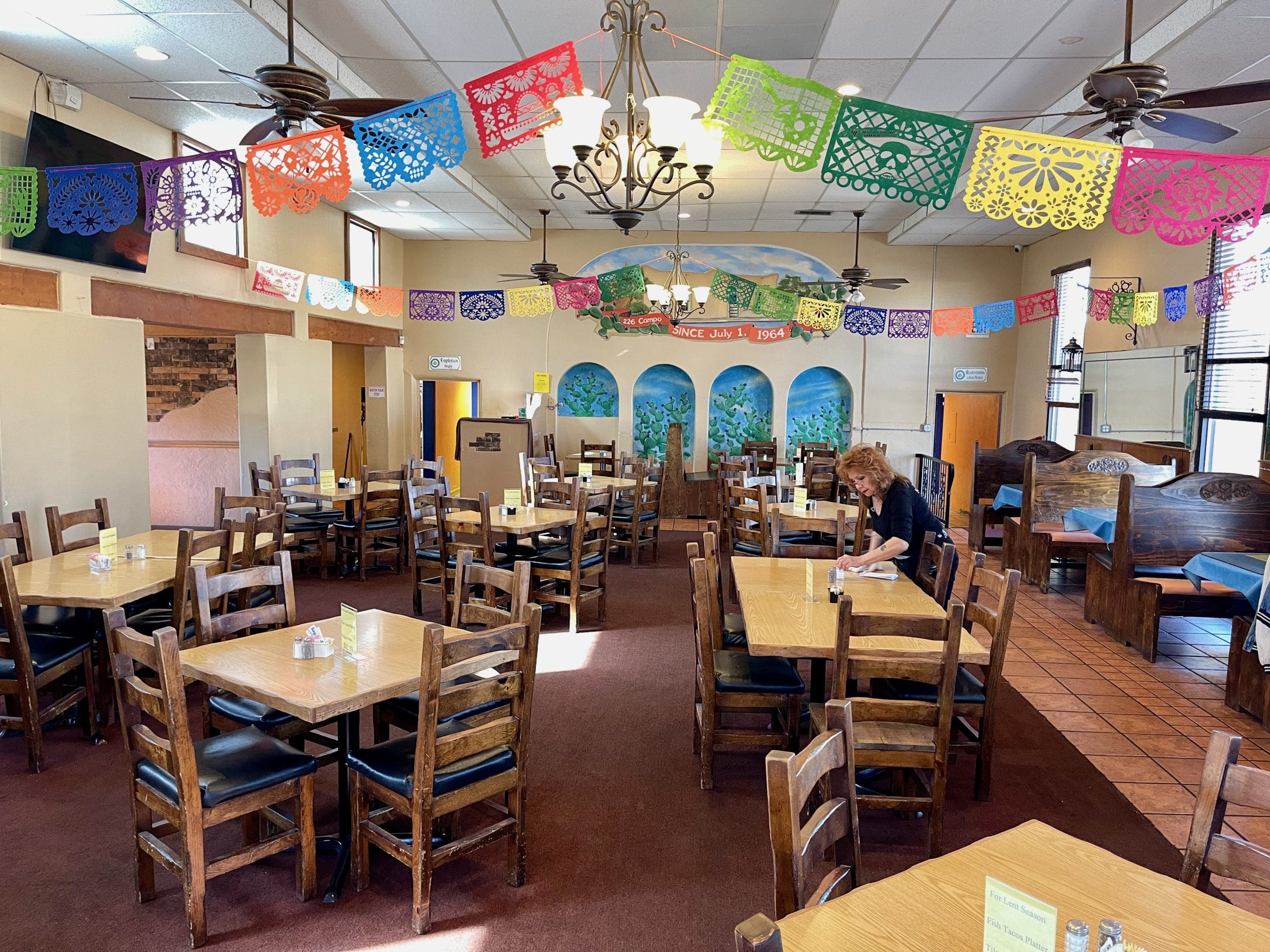 Architecturally (ten bonus points if you know what a nave, narthex and transepts are), Nopalito is unlike any other “Mexican” restaurant in Las Cruces. That’s because it was built in 1920 and served as the Templo Bautista until outgrowing its location. By the way, vestiges of the church remain intact in what was the first Spanish Baptist church in Las Cruces. In 1970 when the church decided to move to a larger structure, Jose (J.R.) and Ernestina Gallegos saw it as providence. Not only had they met at the Baptist temple, it was literally “just around the corner” from their original Nopalito restaurant, a small adobe house they had converted to a restaurant and launched in 1964. (Note: It’s just coincidence, but Mary & Tito’s in Albuquerque also got its start in 1964). From is start, Nopalito was a huge hit among diners jonesing for great “Mexican” cuisine.