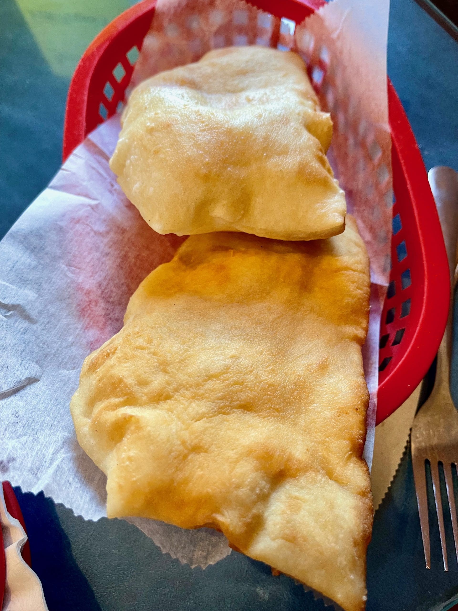 My Kim may be the most unlucky person in New Mexico. A recent prescription change has made anything stronger than ketchup too piquant for her to enjoy. Thankfully most New Mexican restaurants do offer some entrees sans chile. One of Nopalito’s offerings with no chile is the flauta plate (your choice of beef or chicken, avocado or (and) sour cream). Flautas, which translate from Spanish to flutes, are made from tortillas that are filled then rolled up and fried. The result: a long, thin, flute-shaped roll that’s extra-crispy and bursting with a savory, spiced filling. They’re not as common in Northern New Mexico as they are in the Las Cruces area. Maybe they should be. They’re especially good when dipped into the creamy, rich guacamole.