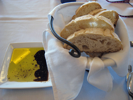 As we perused the menu, a conical wrought iron basket of sliced bread served warm was brought to our table along with a rectangular plate of olive oil mixed with Balsamic vinegar. The bread had a familiar taste and texture. David confirmed the bread is made by Fano Bakery, a Duke City treasure specializing in artisan-style rustic and specialty breads. Not surprisingly, Fano Bakery bread was served at Scalo as it is at numerous high-quality restaurants. Characteristic of baguettes from Fano, a hard-crust complements a soft, airy texture. It’s an excellent bread on which to nosh while contemplating your meal.