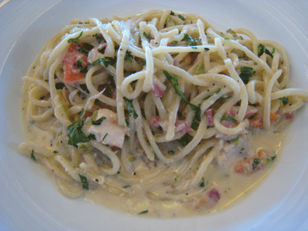 If you like rich pastas (and who doesn’t), the O Eating House has a winner in the Apple Wood Smoked Bacon Linguine (apple wood smoked bacon, caramelized onions, Roma tomatoes and cream). Consider it heresy if you will, but that dish, sublime as it sounds, can be improved. General Manager Daniel Marquez explained how, recommending the addition of smoked jalapenos and grilled chicken. It was an astute recommendation for which we are most grateful. The smoked jalapeno, in particular, added piquancy to a dish that might otherwise have been too rich if that’s possible. Apple wood smoked bacon improves everything it touches; nothing else needs to be said about its contribution to the dish. The housemade linguine is perfectly prepared and the cream sauce is as rich as expected, but oh so nicely tempered by the smoked jalapeno. This is a phenomenal dish.