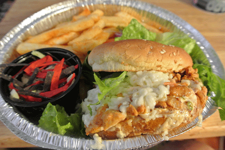 Chile Rio offers only one burger on its menu, but it’s a unique burger well worth ordering. It’s an interesting variation on New Mexico’s iconic green chile cheeseburger in that it’s made with three chiles and is, in fact, called the Rio 3 Chile Burger. The three chiles are Hatch green chile (of course), breaded jalapeño wheels and pico de gallo. Not to be understated on the flavor profile, there are also three quesos on the burger along with lettuce, tomato and chipotle mayo on a hand-form ground sirloin patty. The Rio 3 Chile Burger is a multi-napkin affair brimming with flavor. Despite the three chiles, most New Mexicans will handle its piquancy easily.