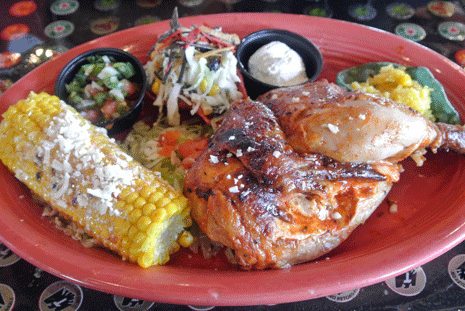 Deciding which entree to have is a challenge, one that will have you perusing the menu time and again. There are so many options that your most difficult challenge will be ordering one of your usual favorites or something brand new. The Yucatan Rotisserie half-chicken is a little of both, a rotisserie chicken that’s different from most you’ve had. The chicken is marinated for 24 hours in a rub of achiote paste and citrus juices. The rotisserie seals in the juices and the marinade of earthy achiote and sweet-tangy citrus penetrates deeply. The Yucatan-style chicken is available with other entrees and should not be missed.