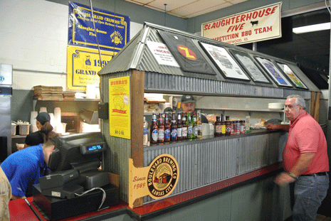 As you pull up to Oklahoma Joe’s, there are telltale signs that you might just be approaching greatness. License plates from virtually every corner of the fruited plain are indicative of pilgrimages made by barbecue enthusiasts who traverse the country in search of the best barbecue. Oklahoma Joe’s occupies a working multi-pump gas station and a convenience store you can’t pigeonhole with the 7-11 variety because its aisles are stocked with an astounding number of barbecue sauces and spice rubs, including many from other pantheons of barbecue greatness throughout America.