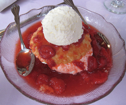 Portions are large, but that’s a good thing because you can take home for later consumption, some of the best New Mexican food in northern New Mexico. Make sure you save room for dessert. In the summer that means strawberry shortcake, a fabulous dessert. Instead of the conventional shortcake, Rancho de Chimayo crafts an oval cake akin to a baking powder biscuit and places it atop several dollops of cream in an island of fresh, sweet strawberries.
