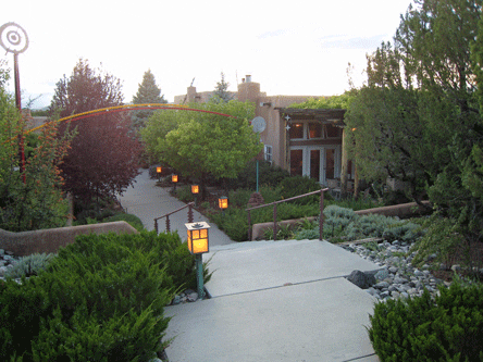 You’ll breathe long and deeply of the clean, crisp, salubrious air as you stroll leisurely from the parking lot to the inn. It’s a short walk you’ll take slowly so as to take in the stunning panorama that is the convergence of unlimited sky bowing down to touch the earth. The cynosure of the 225-acre complex is the verdant oasis surrounding the country inn and restaurant, a capacious adobe hacienda. The garden courtyard around the inn seems perpetually in bloom with impeccably manicured deciduous foliage flanking the terraced walkway leading to the inn.