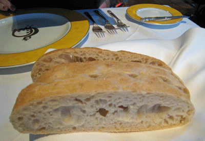 The other remaining standard is the rustic ciabatta bread from the world-famous LaBrea Bakery in VanNuys, California. This classic Italian bread is characterized by its thin, golden crust and moist, light interior with beautiful airy holes. It’s a cut–make that a slice–above other artisan bread. Plain butter is all the accompaniment this bread needs to be memorable, but you might want to save a slice or two to sop up some of the delicious sauces to come later.